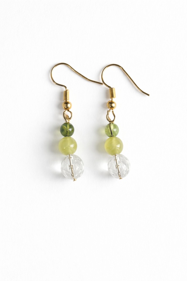 爽やかでポジティブ☆プレナイト・ペリドット・カット水晶ピアス