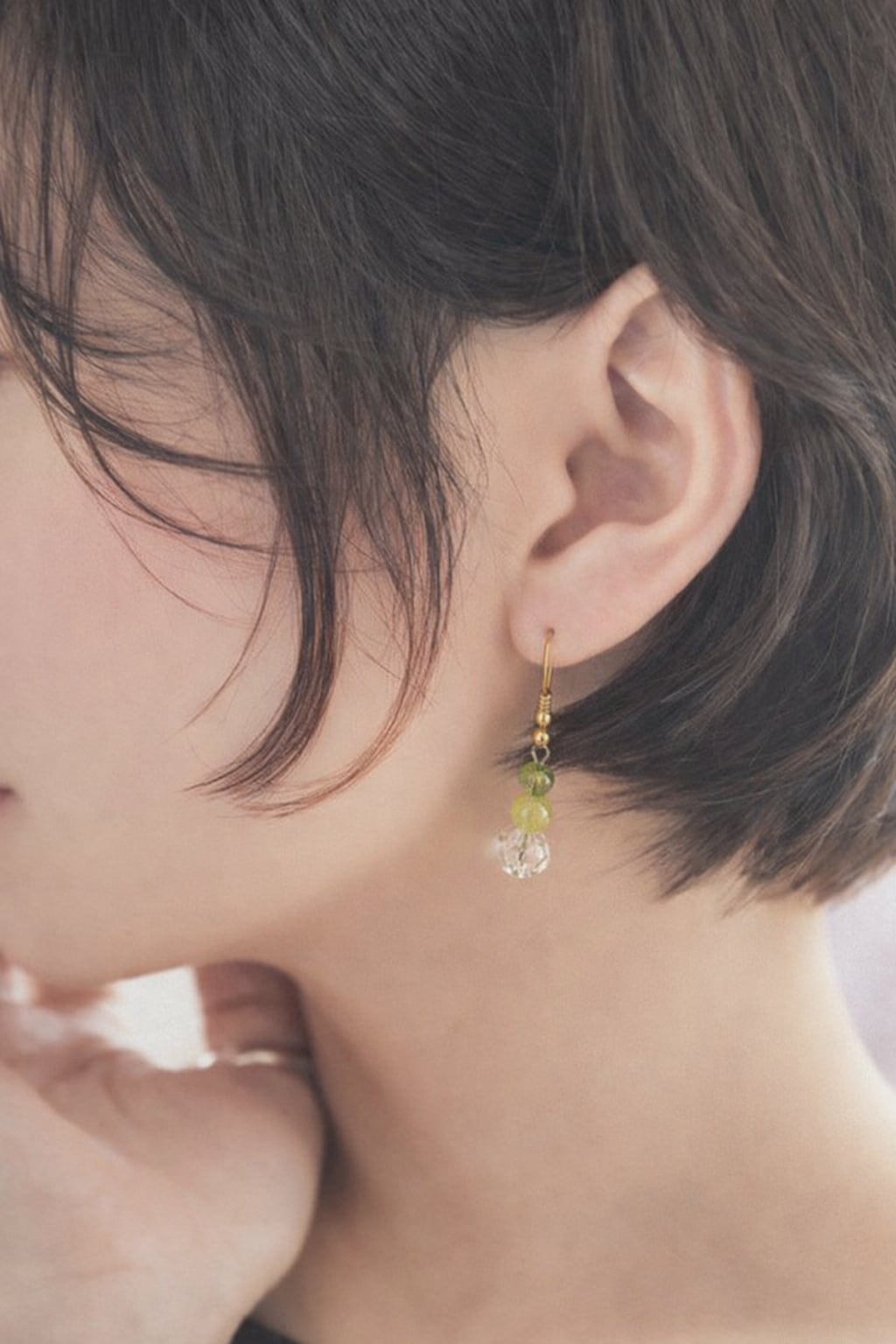 この爽やかでポジティブな印象を与えるプレナイトとペリドットのピアスは、自然な美しさを引き立てるデザインが特徴です。鮮やかなグリーンのプレナイトとペリドット、クリスタルの輝きが相まって、華やかな存在感を醸し出しています♪