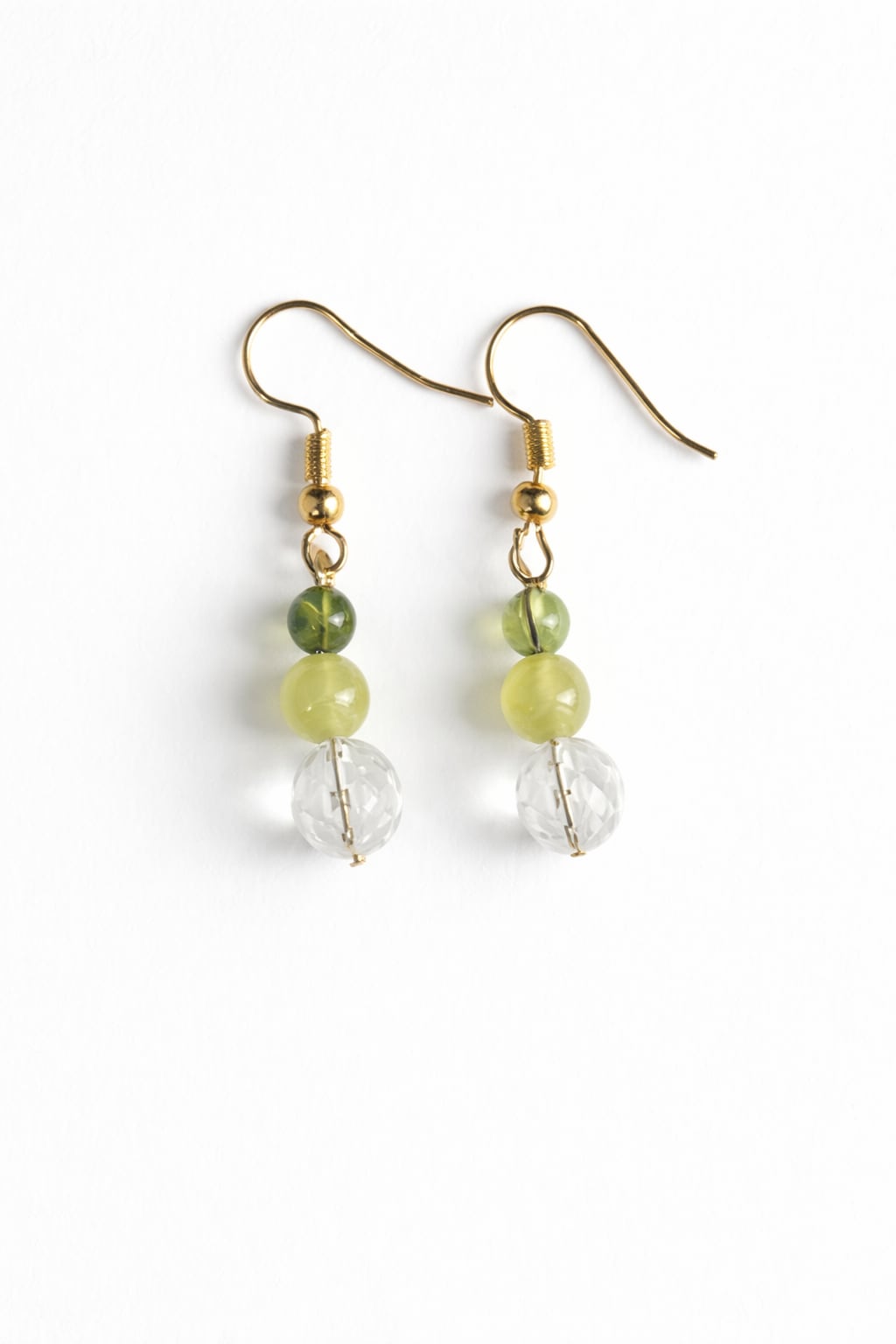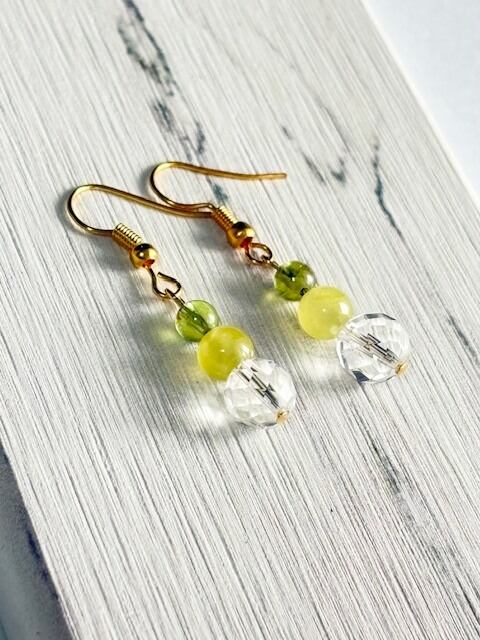 プレナイト・ペリドット・カット水晶ピアス