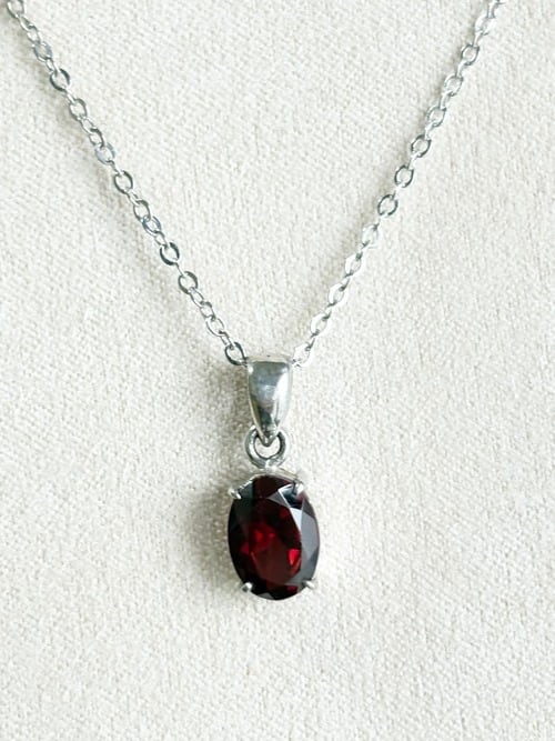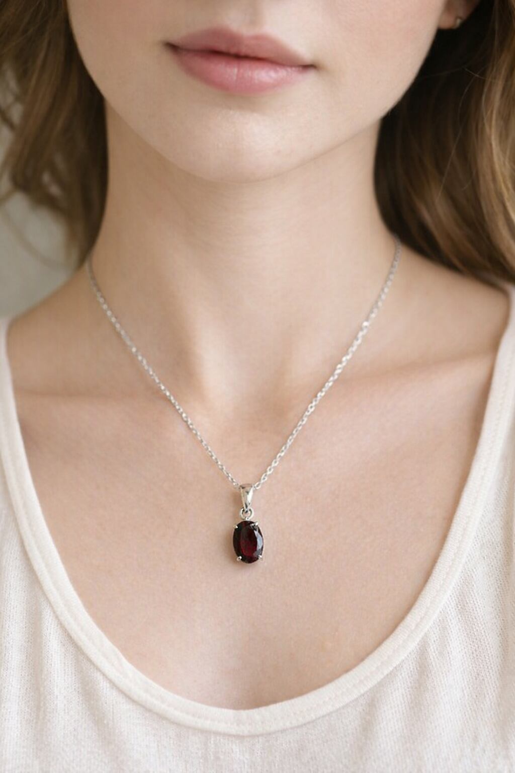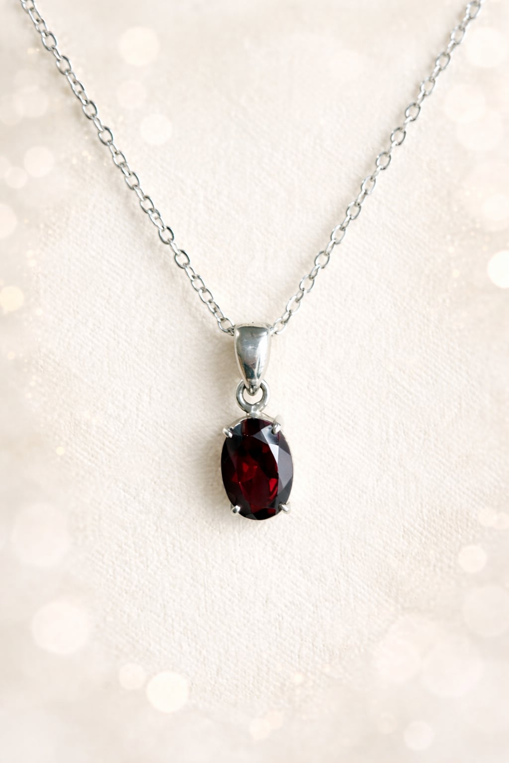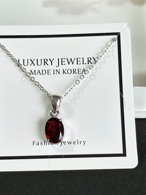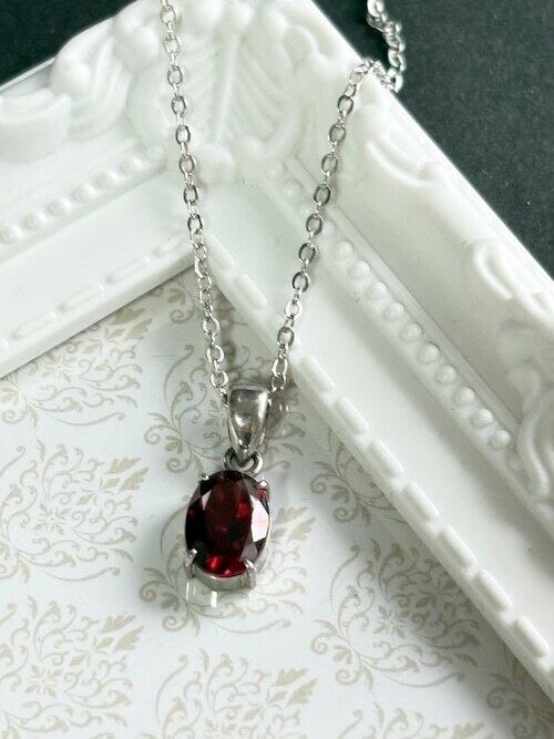 深い赤色が魅力のガーネットを使用したネックレスです。その洗練されたデザインは、シンプルでありながらも存在感を放ち、どんなコーディネートにも上品さを加えます。このネックレスは、日常使いはもちろん、特別な場面でも活躍すること間違いなしのアイテムです♪