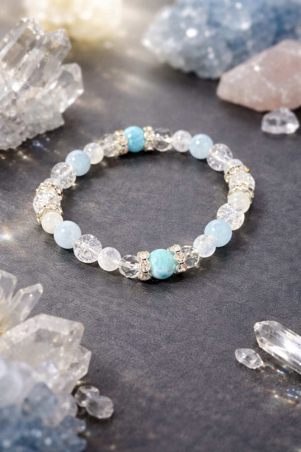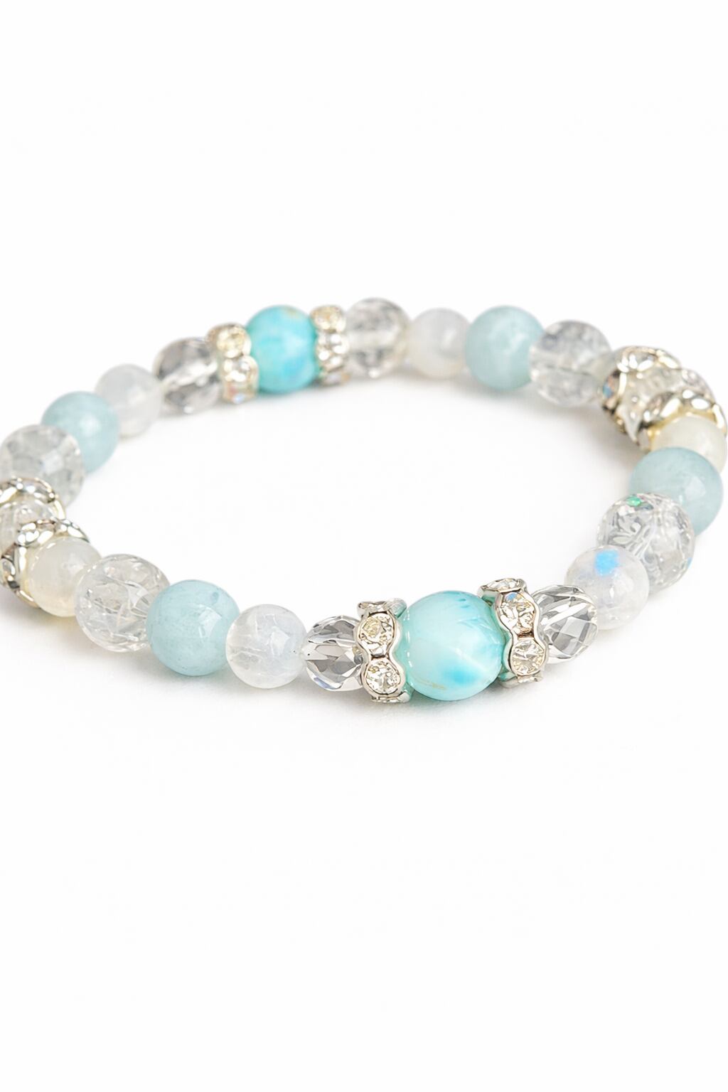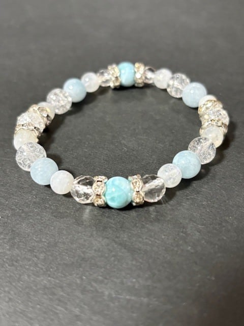 ピースフルで大人気のラリマーに、アクアマリン、ブルームーンストーンと大人気シリーズの石をちりばめて爽やかで美しい女性らしいブレスレットが仕上がりました(^^)/どの石も女性的で穏やか、慈愛に満ちた石シリーズです。