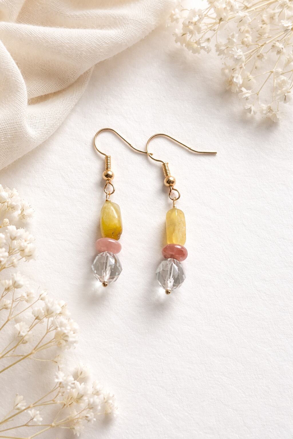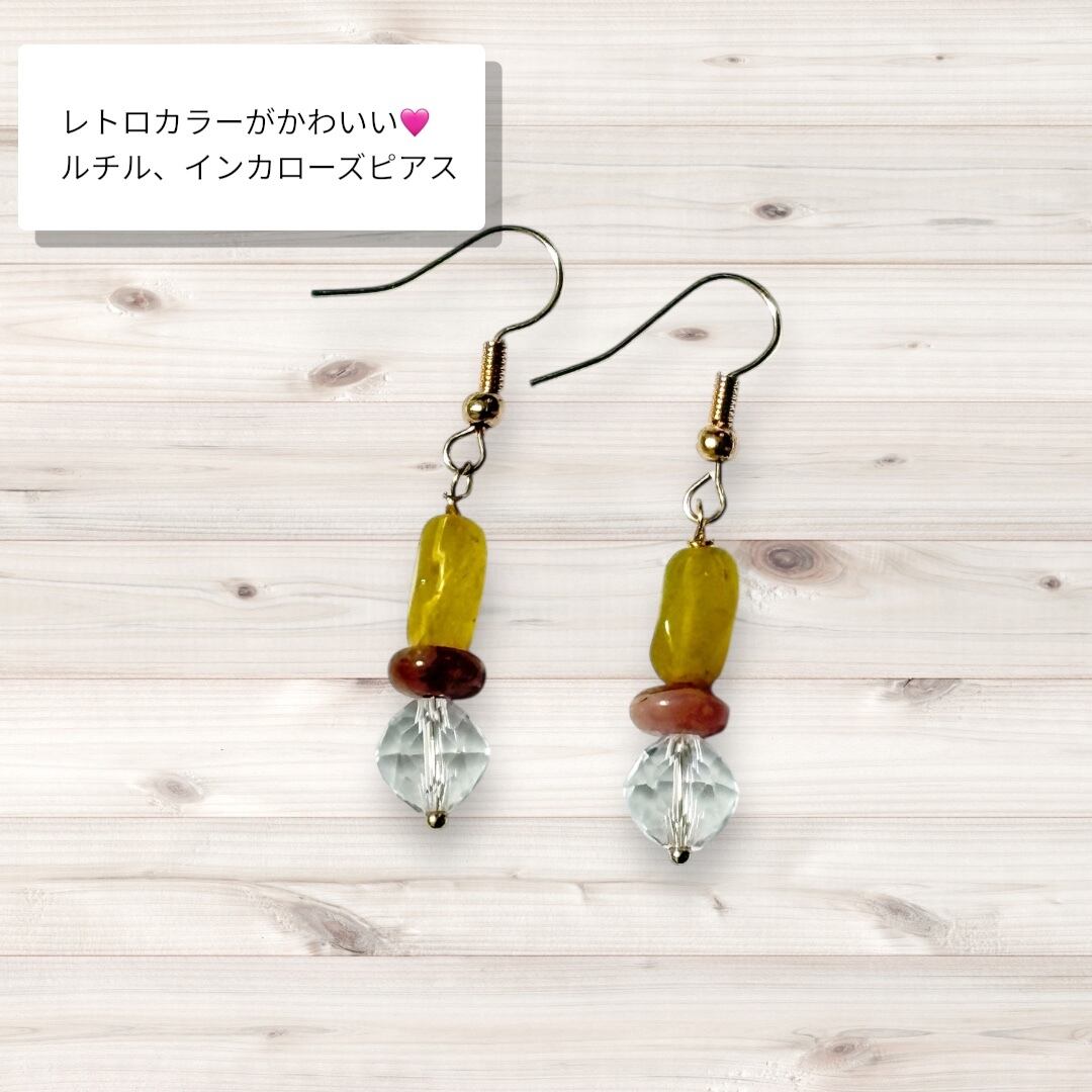 このピアスは、ルチルクォーツの輝きとインカローズの可愛らしい色合いが絶妙に組み合わさっています。カジュアルなスタイルからフォーマルなシーンまで、幅広いコーディネートに合わせられます。耳元で美しく揺れ動くそのデザインは、シンプルながらしっかりと存在感を放ち、あなたの個性を引き立てます。